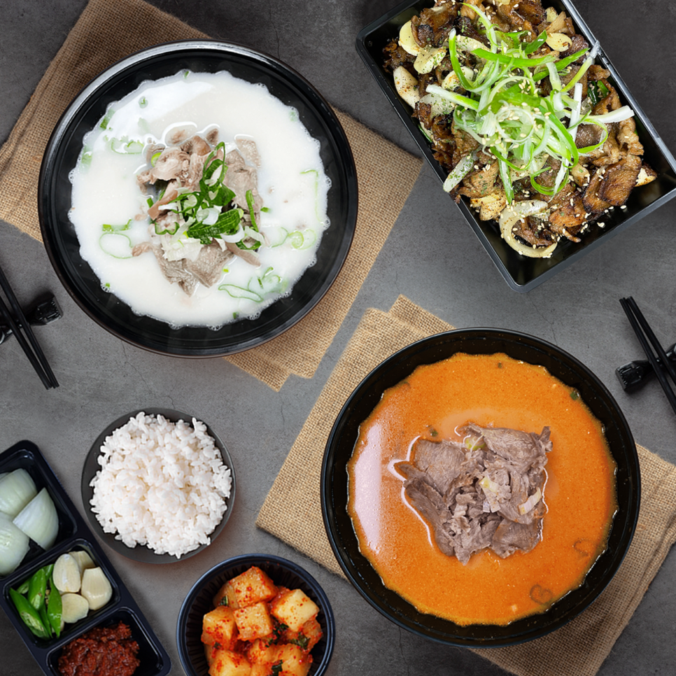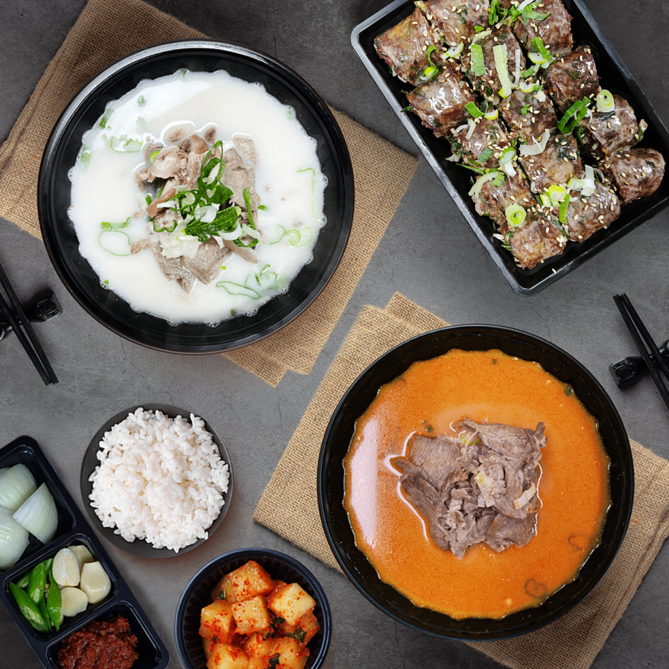 한끼국밥의 다양한 세트 구성 (만두,석쇠불고기,야채토종순대)