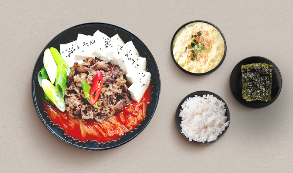 한돈돼지고기 김치찌개와 차돌소고기 김치찌개로 알맞게 구성하였고