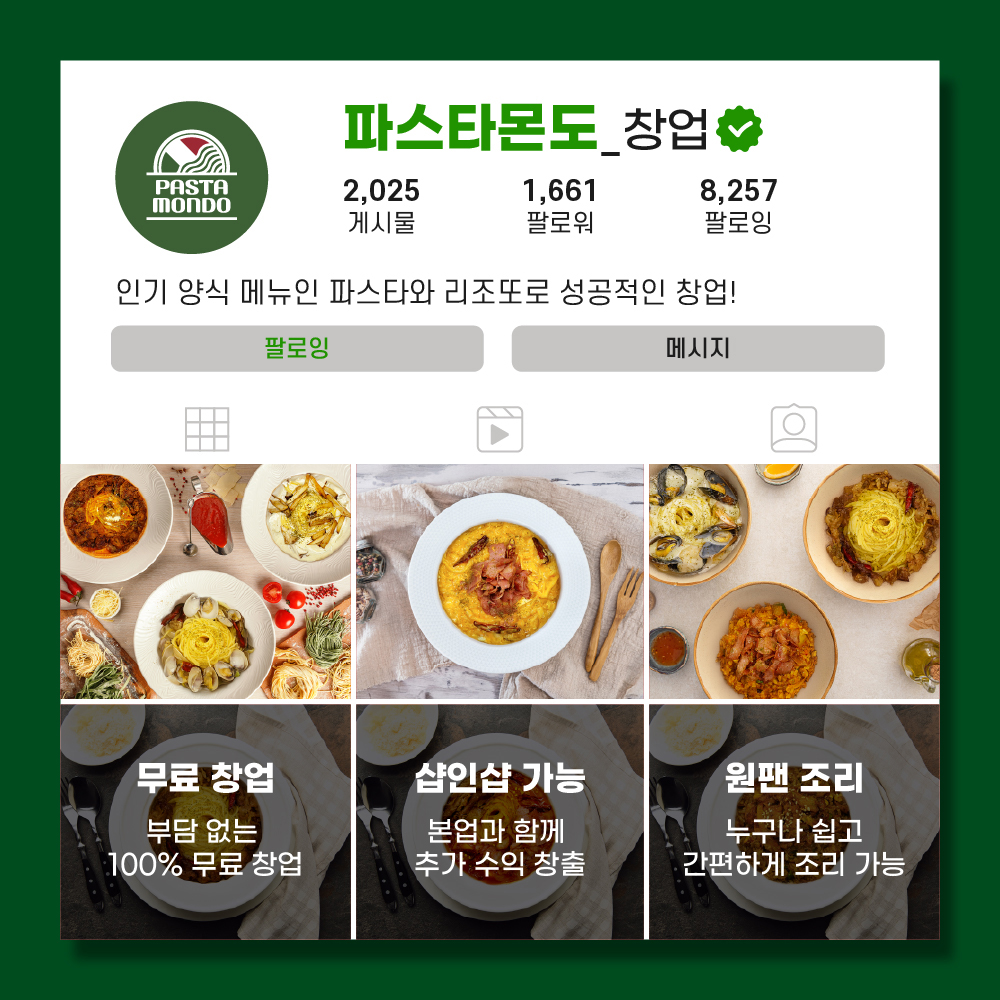 파스타몬도는 홀 창업이 가능할 뿐만 아니라