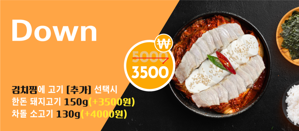 평시엔 김치찜(한돈 돼지,차돌,수육)으로 점심시간대를 배달매출 증대로 만들어 내고,