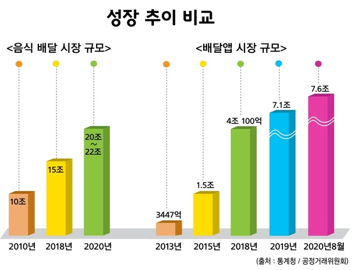 코로나19 이전부터도 배달시장의 확장은 꾸준했었으며